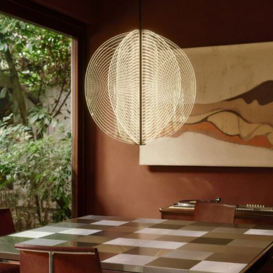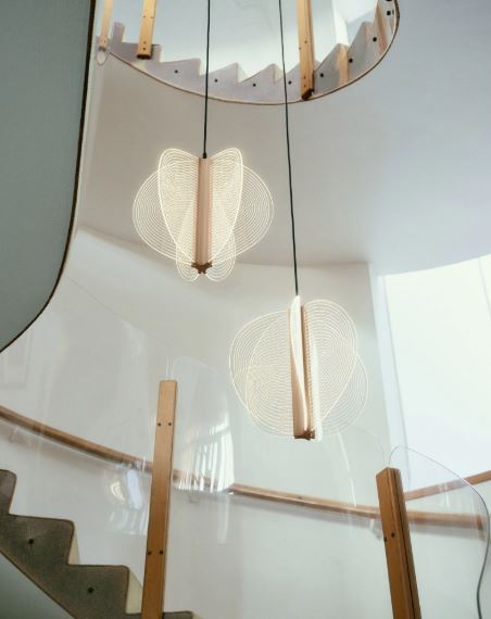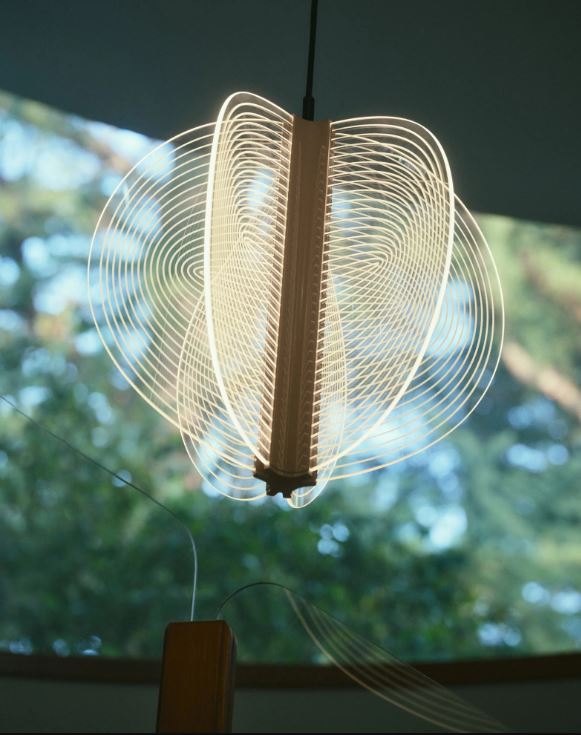 Papylia je evokatívna a divadelná závesná lampa, kde svetlo jemne spočíva na priehľadných sklenených krídlach s mäkkými, prirodzenými tvarmi. Jemná svetelná stopa zvýrazňuje celý povrch a vytvára dynamické textúry, ktoré sa menia a posúvajú v závislosti od uhla pohľadu